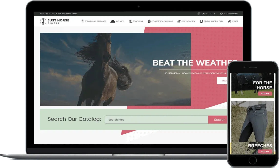 View caseJustHorseRiders- Premium eBay Shop & Product Listing Template Design with M2E PRO Integration