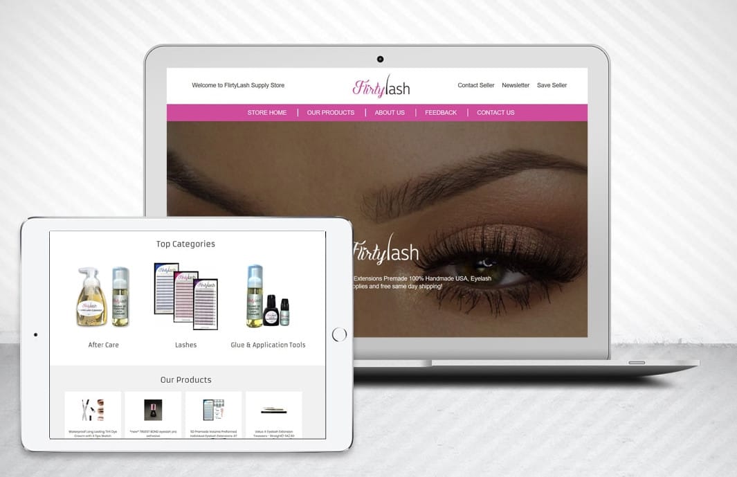 View caseFlirty Lashes – Ecwid to eBay and Amazon integration with Professional Storefront Design